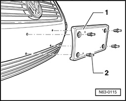 - License plate holder - 1 - is secured by four expanding clips - 2 -.