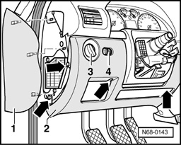 - Disconnect harness connectors from light switch - 3 - and from headlight beam adjuster - 4 -.