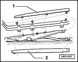 - Unclip lower trim - 2 - in front area to vehicle center and unhook at rear.