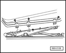 CAUTION: Slotted guide rail must not be driven into "opened" position with sunroof glass panel removed because water channel is no longer pressed down by glass panel and may be wedged in roof.
