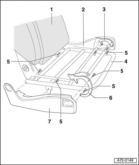 - Remove outer side seat trim - 7 - from bracket - 6 - and backrest - 1 -.