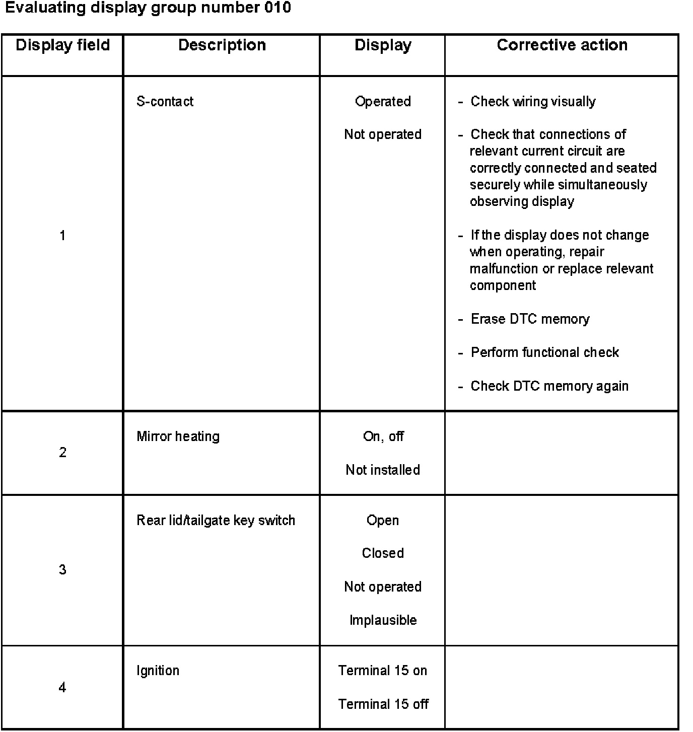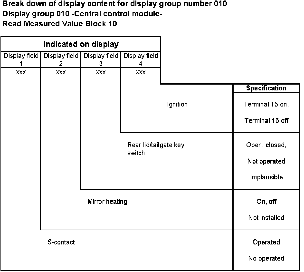 Break down of display content for display group number 010