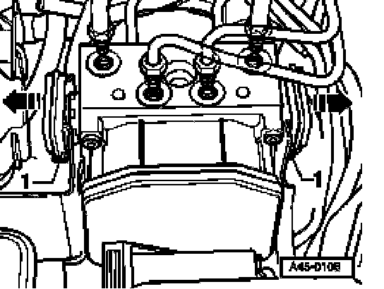 ^ Remove sealing plugs on new hydraulic unit when the corresponding brake line is going to be connected.