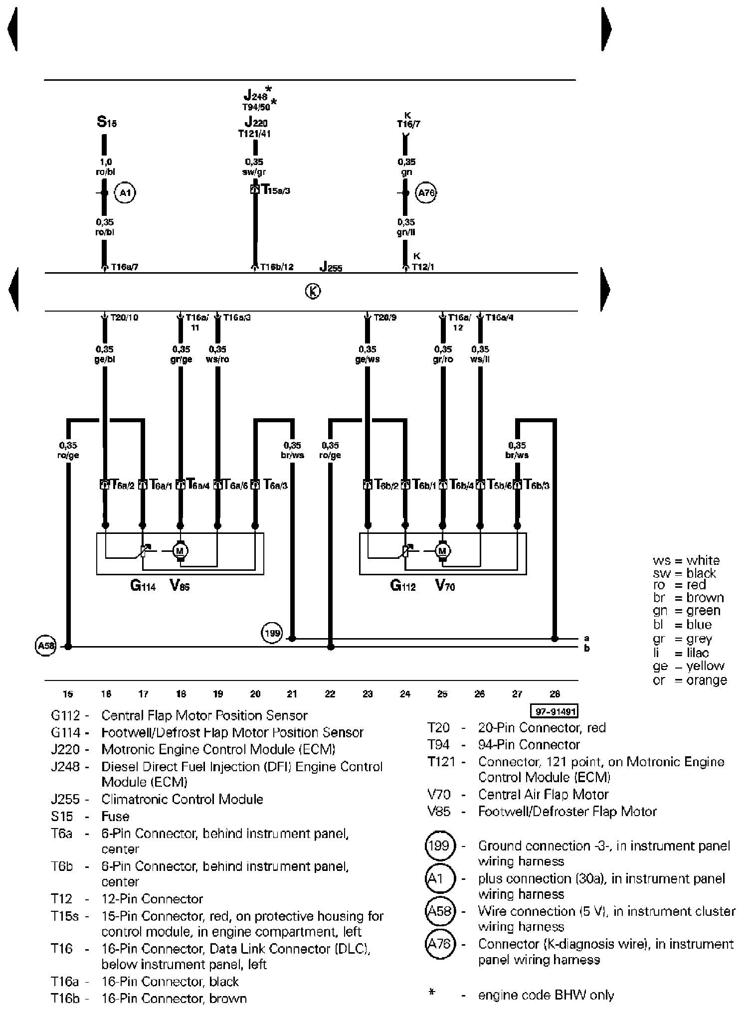 Fuse Identification: Starting with fuse 23, fuses in the fuse holder are identified with an additional numeral 2 added to the number when shown in the wiring diagram (i.e. fuse 23 in the vehicle becomes 223 in the diagrams, fuse 24 becomes 224, and so on).