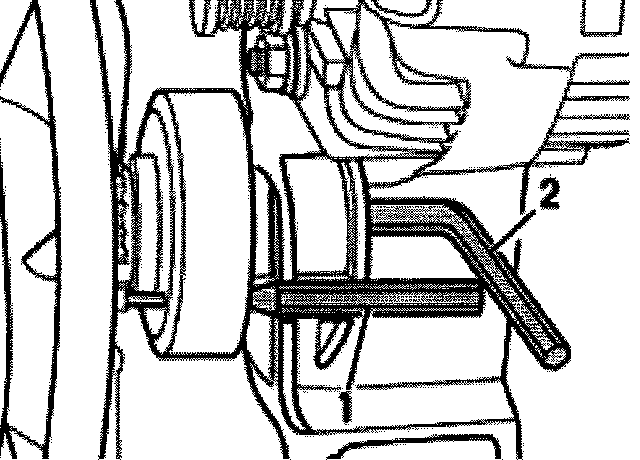 - Unbolt securing bolt for viscous fan clutch (with 8 mm wrench insert hex socket-2-) and remove viscous fan clutch with belt pulley.