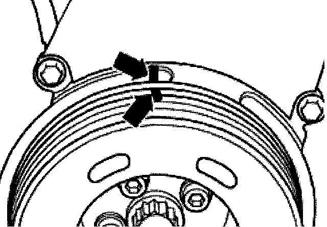 - Install toothed belt on crankshaft gear (note direction of rotation)
