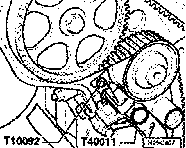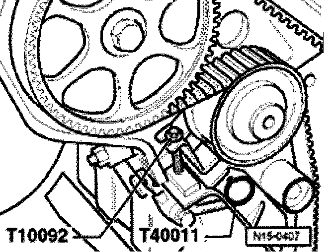 - Tension toothed belt by pulling out T40001 pin and unbolting T10092 tensioning bolt.