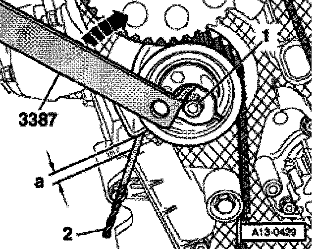- Check dimension -a- using a drill bit -2 between tensioning lever and housing of tensioning device.
