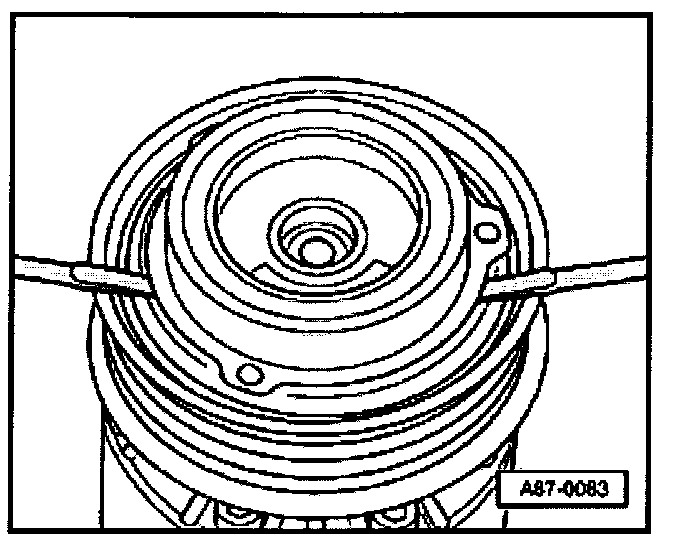 - With clutch energized, measure gap between belt pulley and clutch plate with depth gauge -C-: