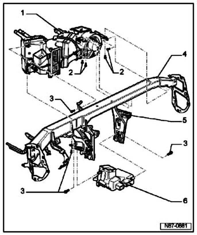 - Remove Heating and A/C unit mounting screws -2- and -3-.