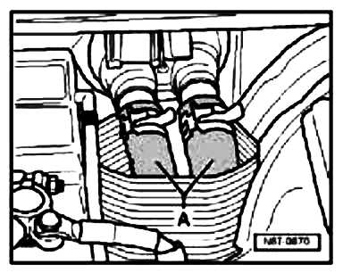- Note Installation orientation of coolant hoses -A- (inlet and outlet) in engine compartment.