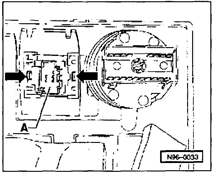 - Pull switch -A- through instrument panel frame from behind and remove.