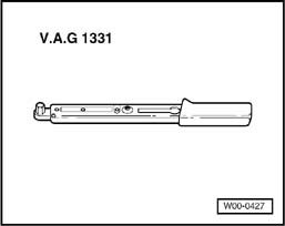 - Place torque wrench in 7 o'clock position (30° from vertical) and tighten belt tensioner to 30 Nm. Hold torque wrench securely and tighten bolts - A - to 20 Nm.