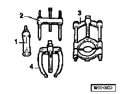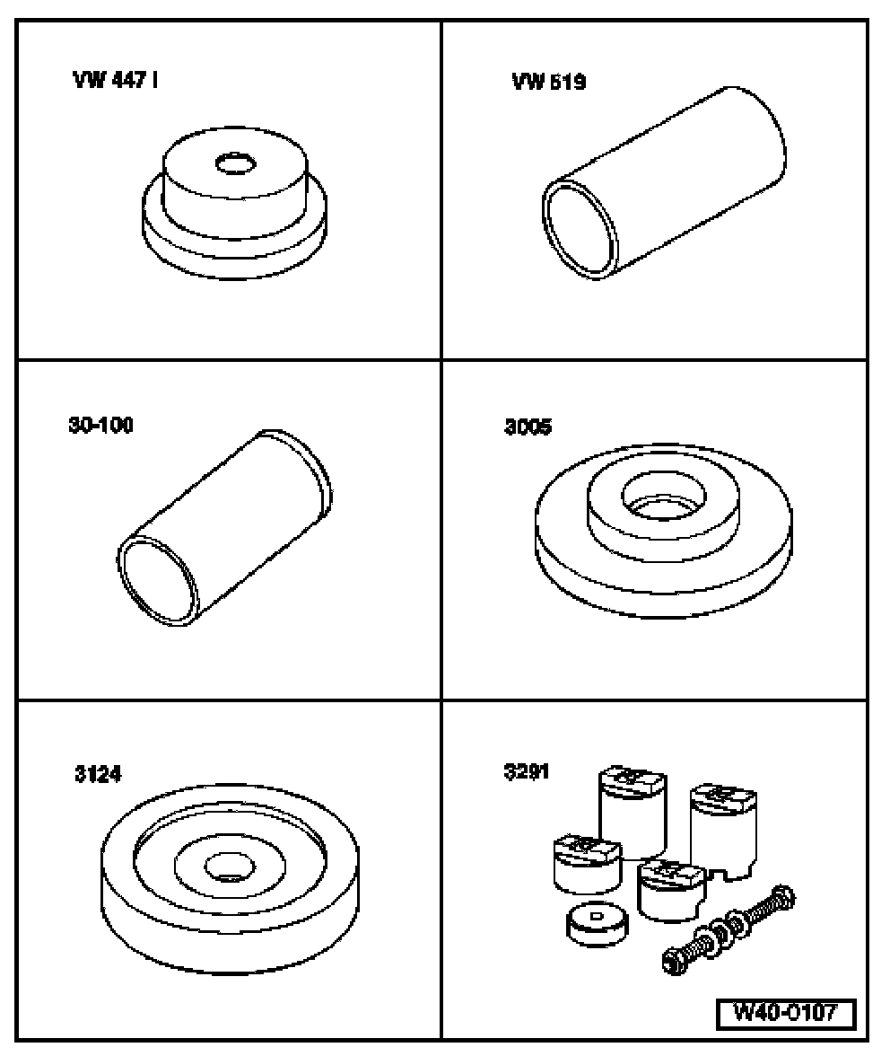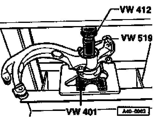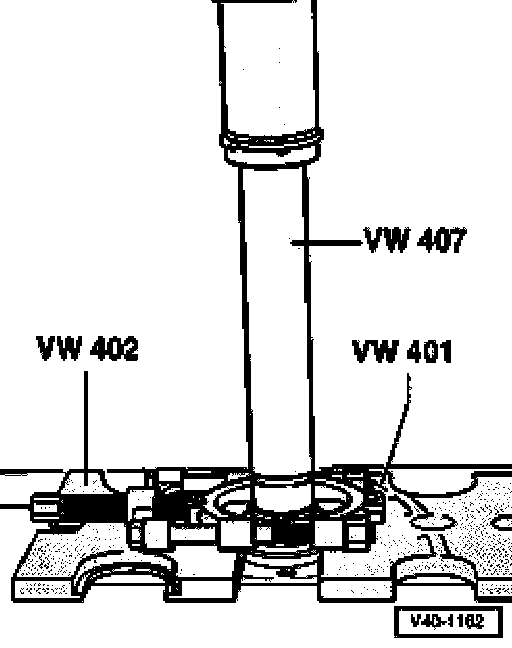 - When pressing in, the thrust piece VW519 must bear only against inner race.