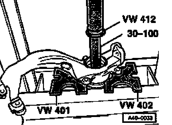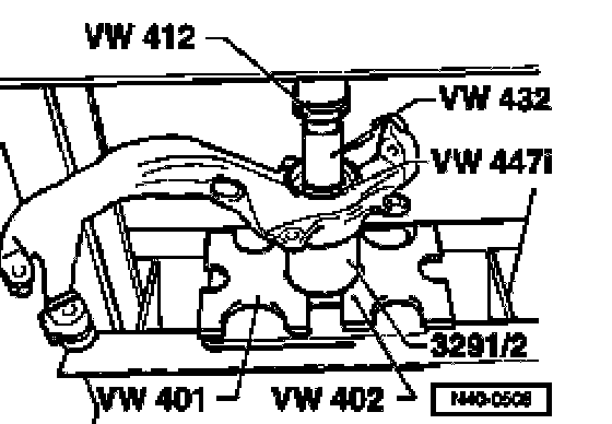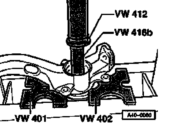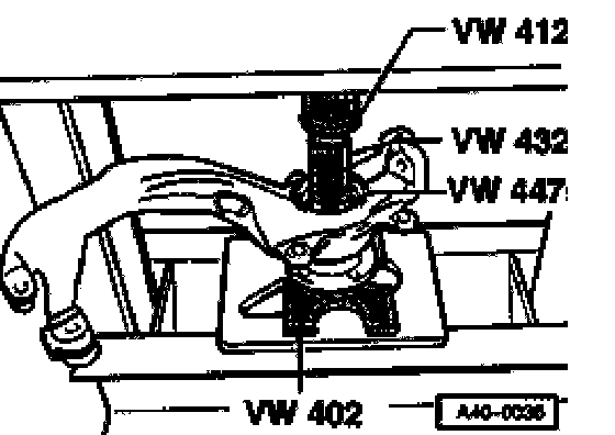 - When pressing in, the thrust piece VW447i must only bear against inner race.