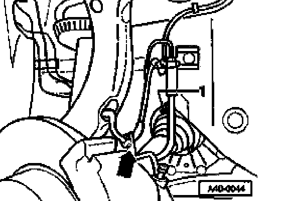 - Disconnect ABS vehicle speed sensor wiring out of retainer on brake caliper -arrow-.