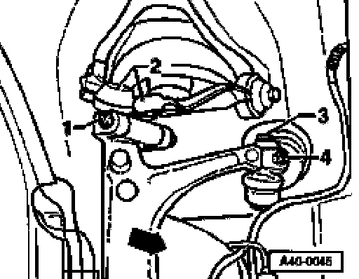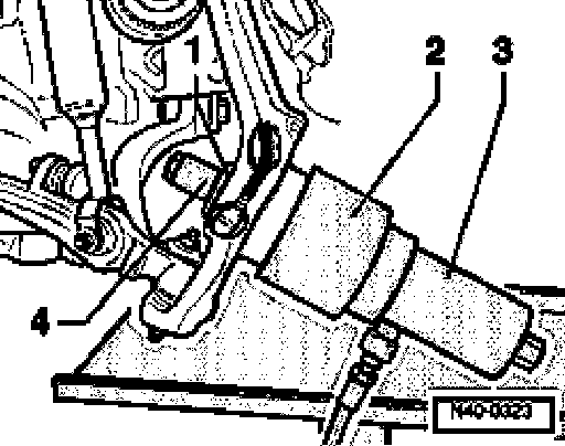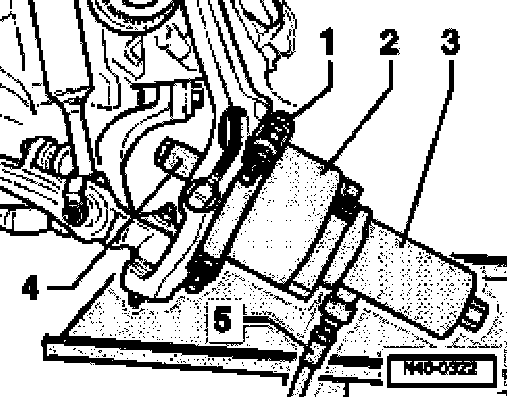 - Remove nut -1-, take out hex bolt and remove both links -2- out upward.
