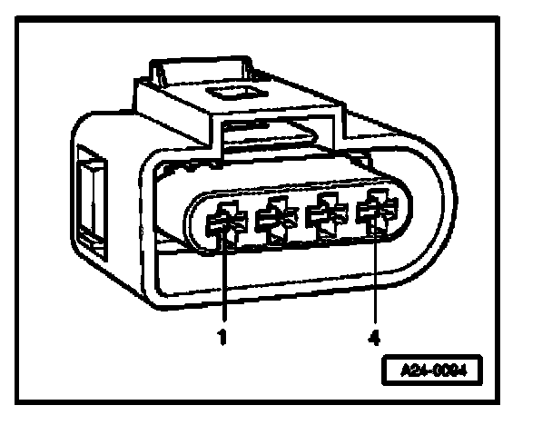 - Use adapter cables from (VAG 1594) to connect multimeter to terminals 1 + 3 of connector for voltage measurement.