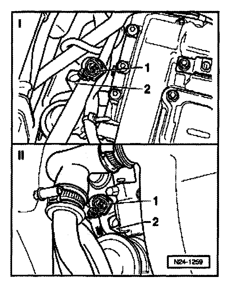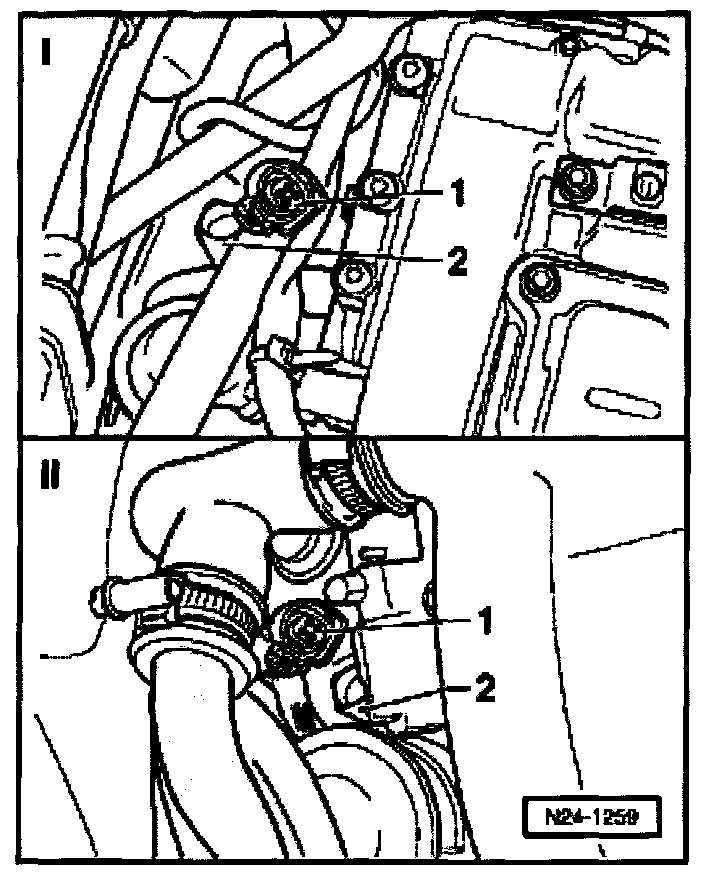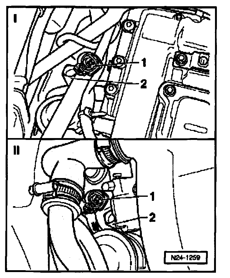 - Disconnect 4-pin connector -1- from Engine Coolant Temperature (ECT) sensor -G62- (item no. 2).