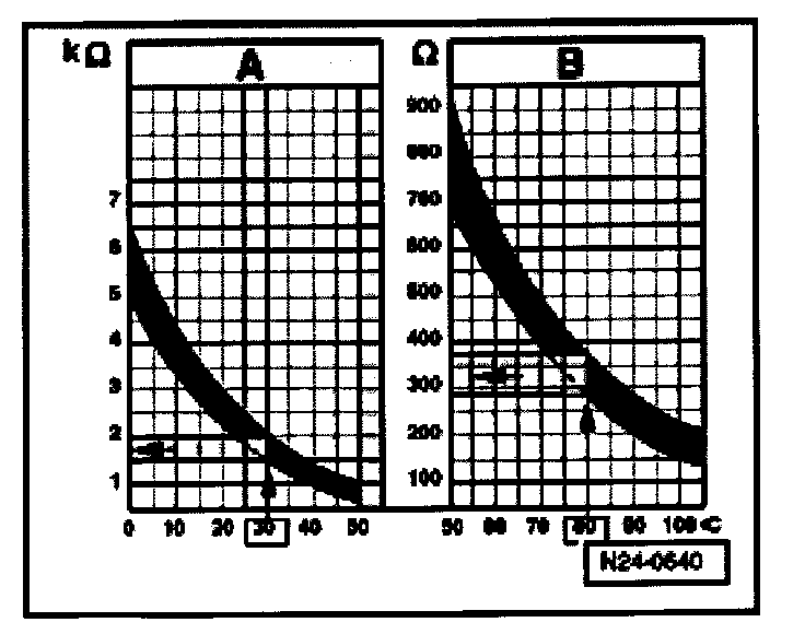 - 30 °C is in range A and corresponds to a resistance of 1.5 to 2.0 kOhms