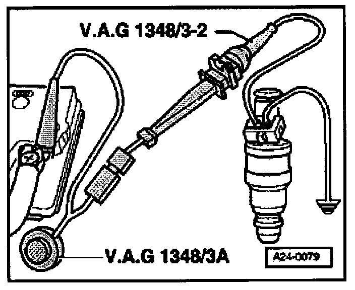 - Use adapter cable to connect second terminal of fuel injector to VAG 1348/3 remote control with VAG 134813-2 adapter wire.