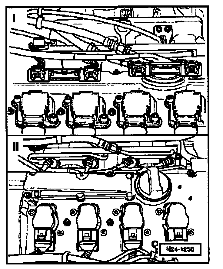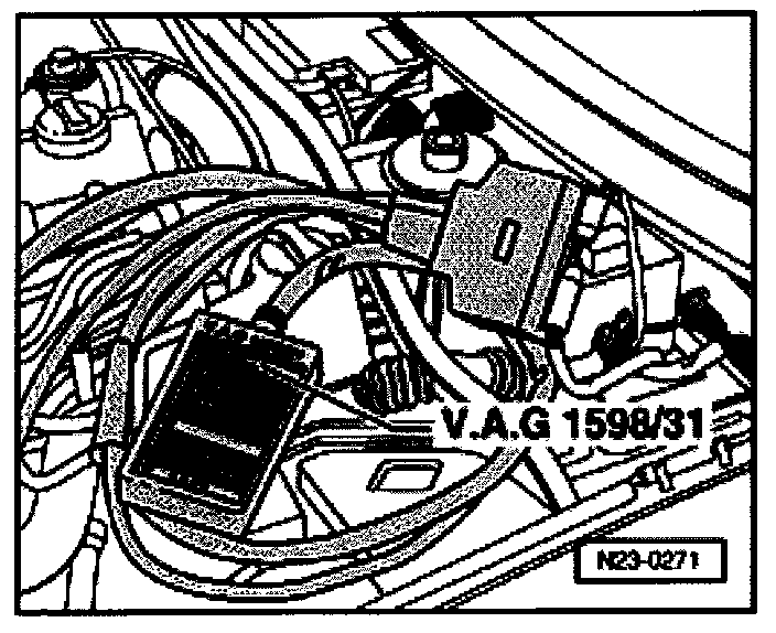 - Connect VAG 1598/31 adapter cable to control module wiring harness. Engine Control Module (ECM) is not connected.