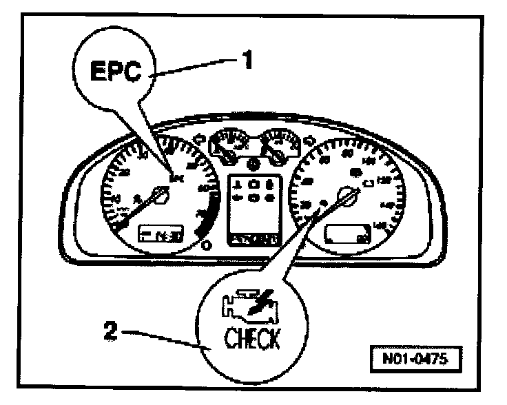 If malfunctions are recognized in the E-Gas system during operation of the engine, the ECM switches on the EPC warning lamp in instrument cluster. (These malfunctions are listed in the DTC table). An entry is made in DTC memory at the same time.