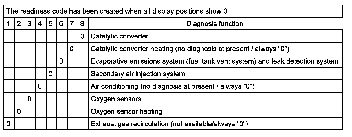 The readiness code has only been created when all of the display positions in field 1 are at 0.