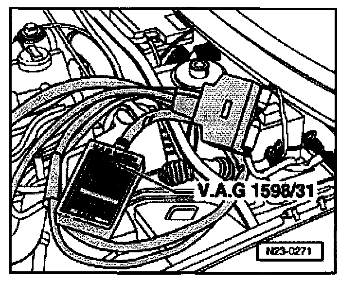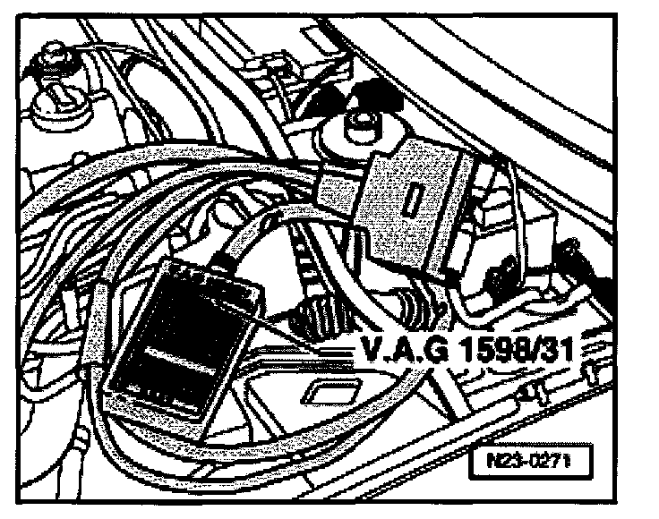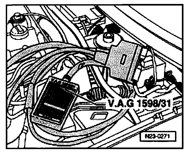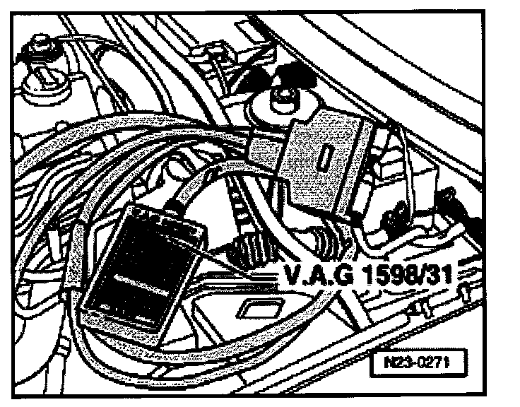 - Connect VAG 1598/31 adapter cable to control module wiring harness. Engine Control Module (ECM) is not connected.