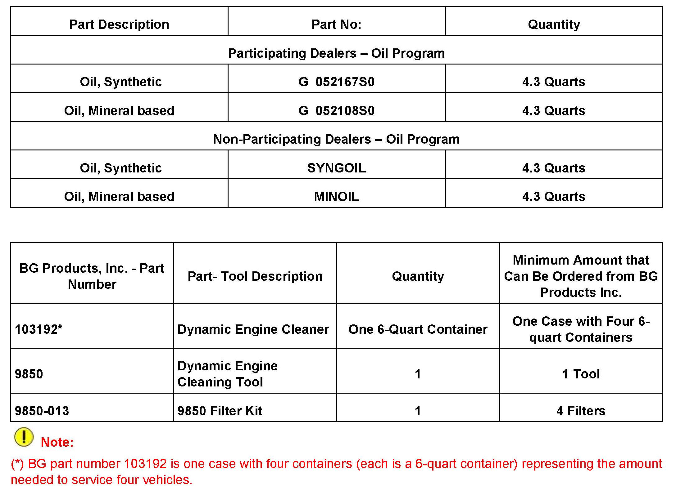 ^ Replace complete engine using factory remanufactured parts in accordance to warranty policy.