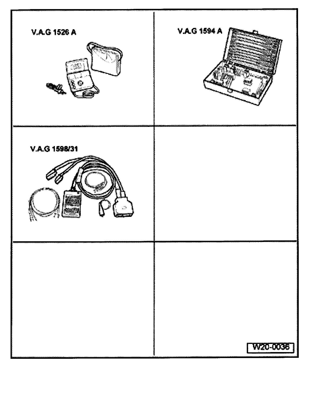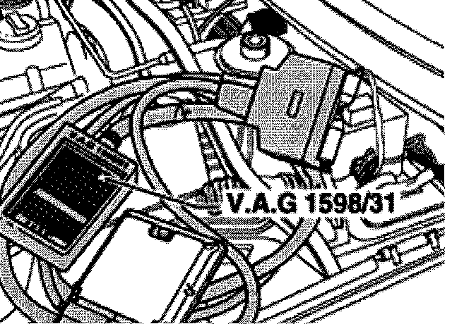 - Connect VAG1598/31 test box to control module wiring harness and to control module.