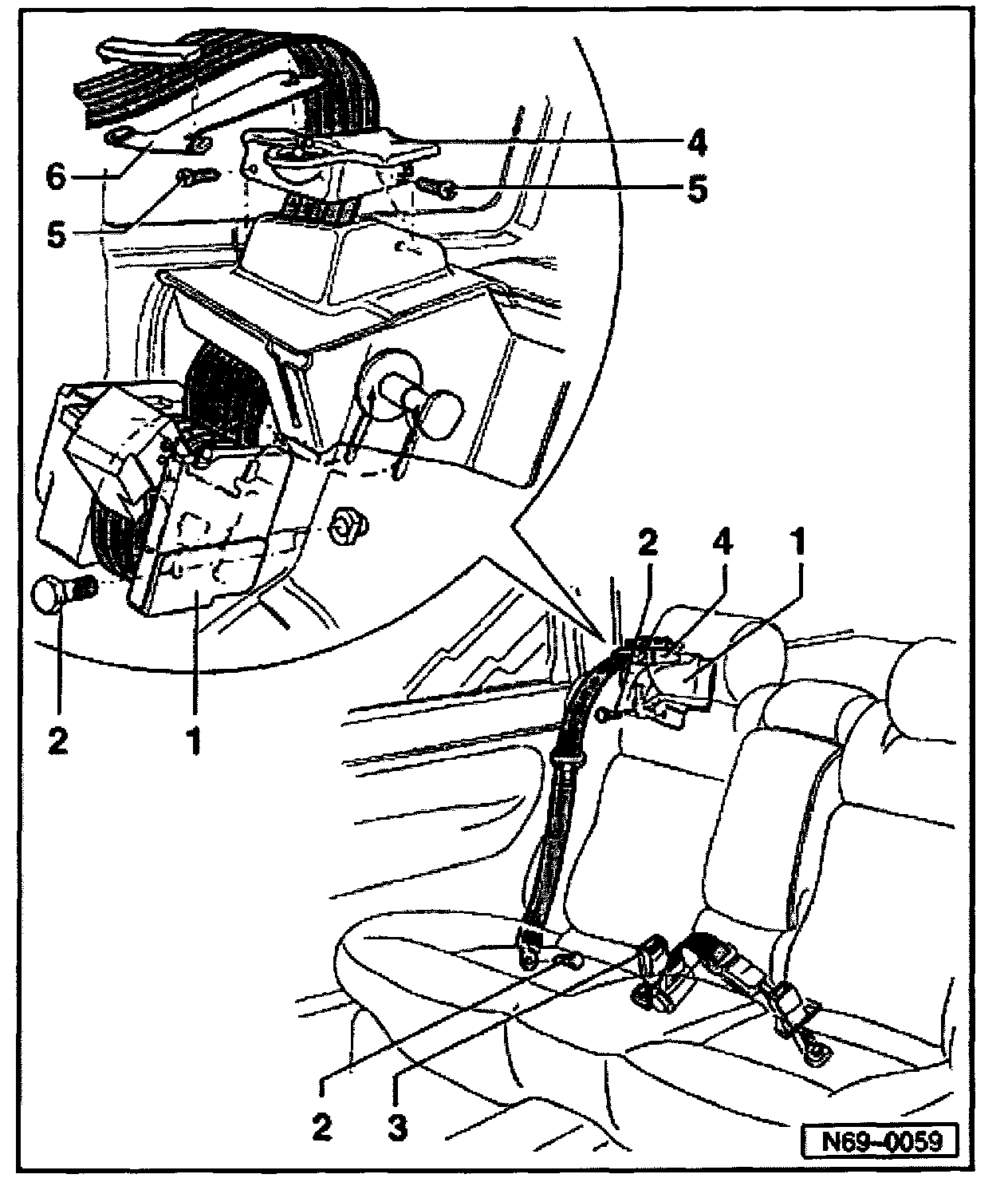 Rear Seat Belts With Belt Tensioner, Assembly Overview