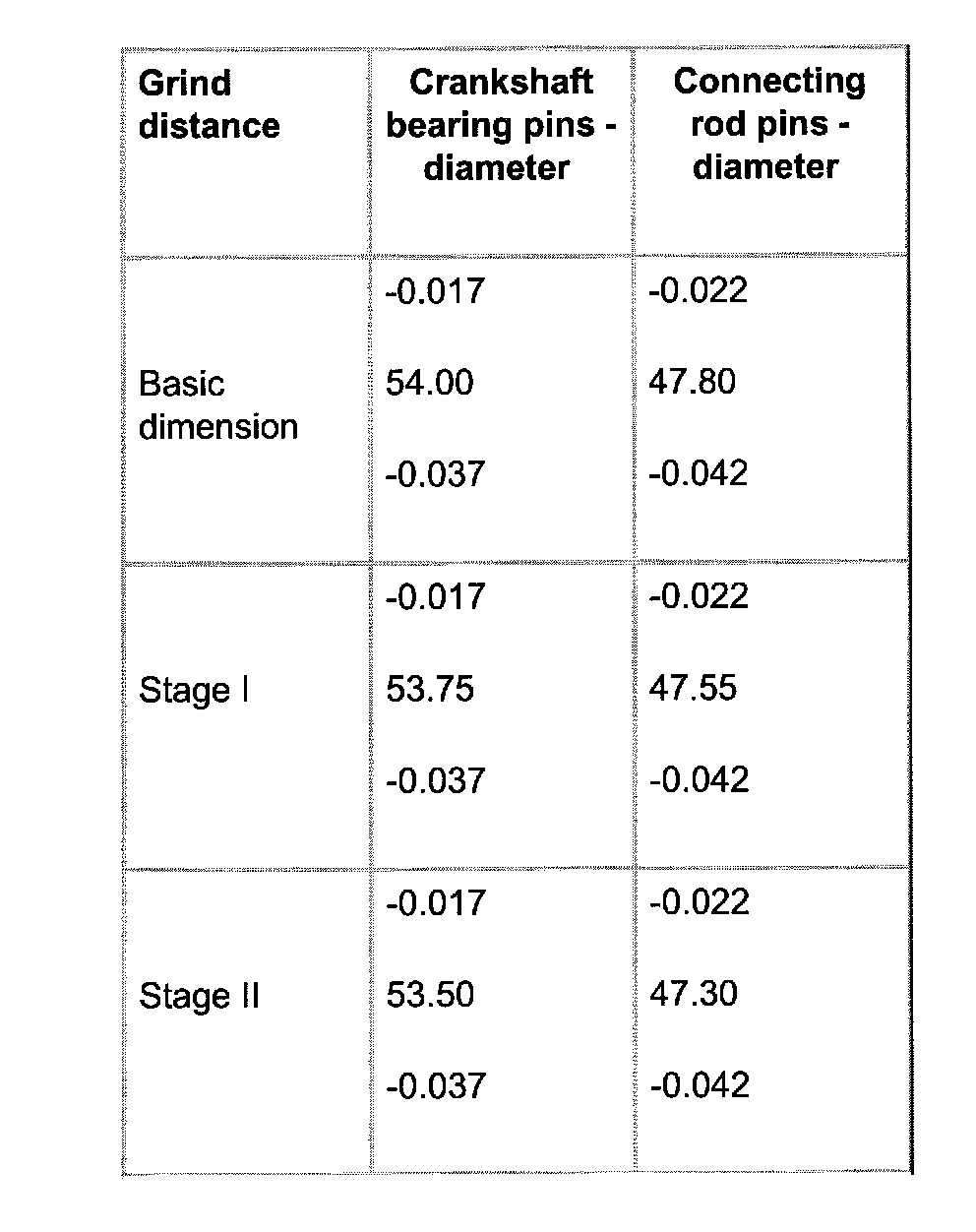 Grind Distance, Bearing and Connecting Rod Pins Diameter