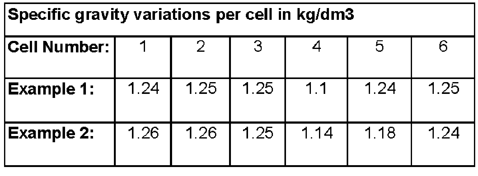 Example 1: Specific gravity in cell 4 (1.10) is too low.