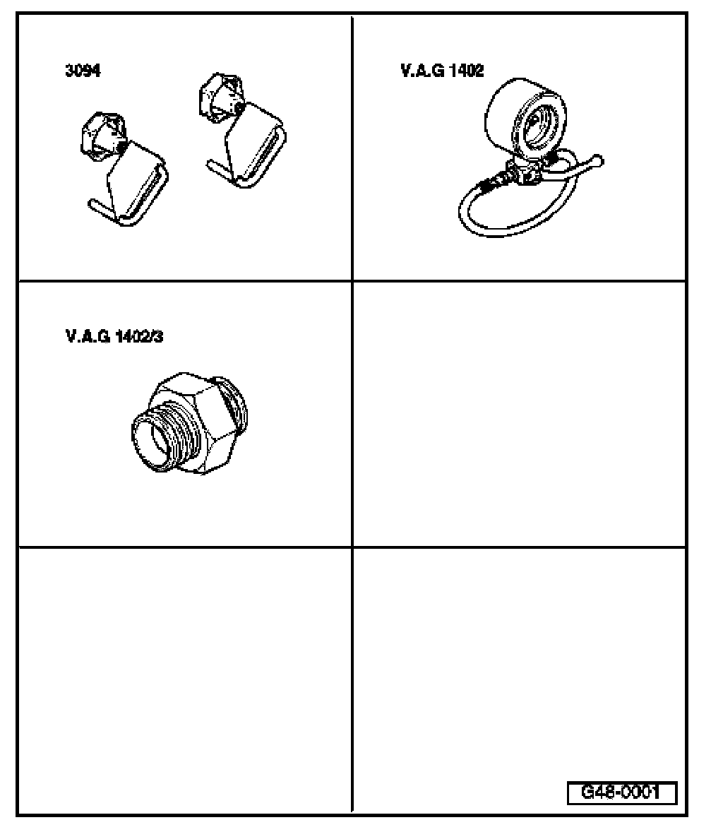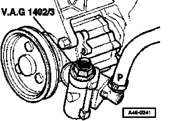- Screw adapter -VAG 1402/3- into power steering pump in place of banjo bolt.