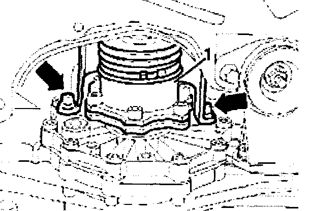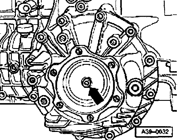 - Remove flange shaft bolt -arrow- (use pin to prevent flange turning).