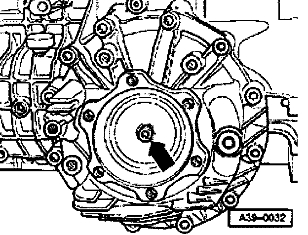 - Remove right-hand drive axle protective plate -arrows-. The third bolt cannot be seen in the illustration.