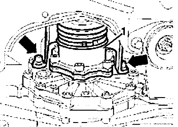 - Fit flanged shaft bolt -arrow- and secure against turning using a punch.