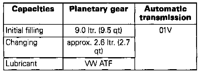Note: Only VW ATF available as a replacement part, can be used in the 01V transmission.