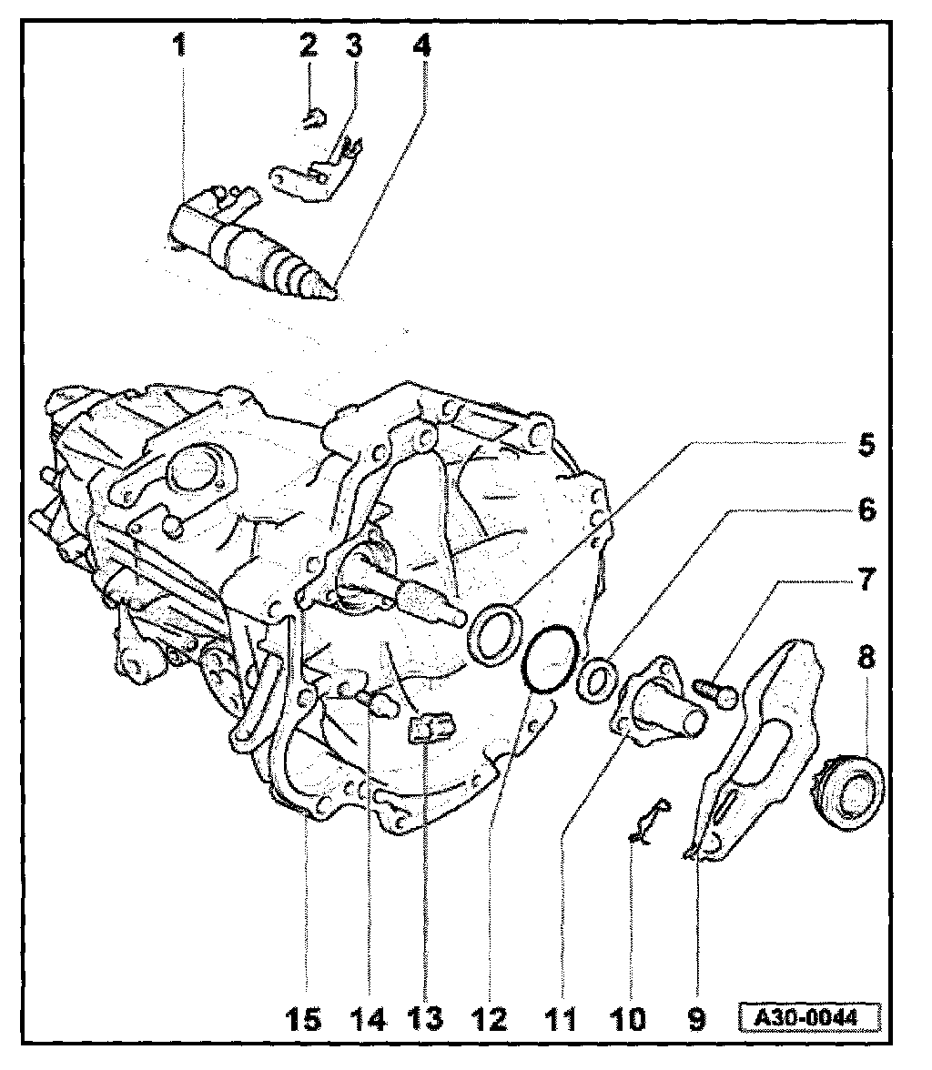 - Before slave cylinder is installed in transmission housing, region -a- of boot must be coated with lithium grease G 052 150 A2.