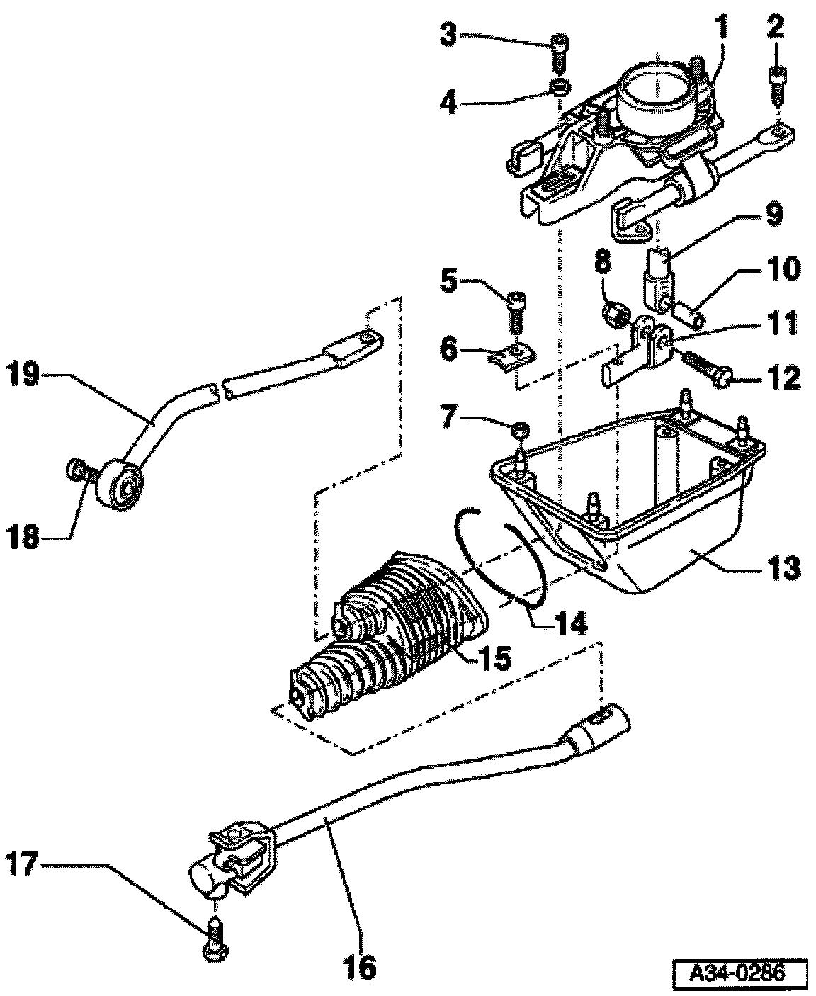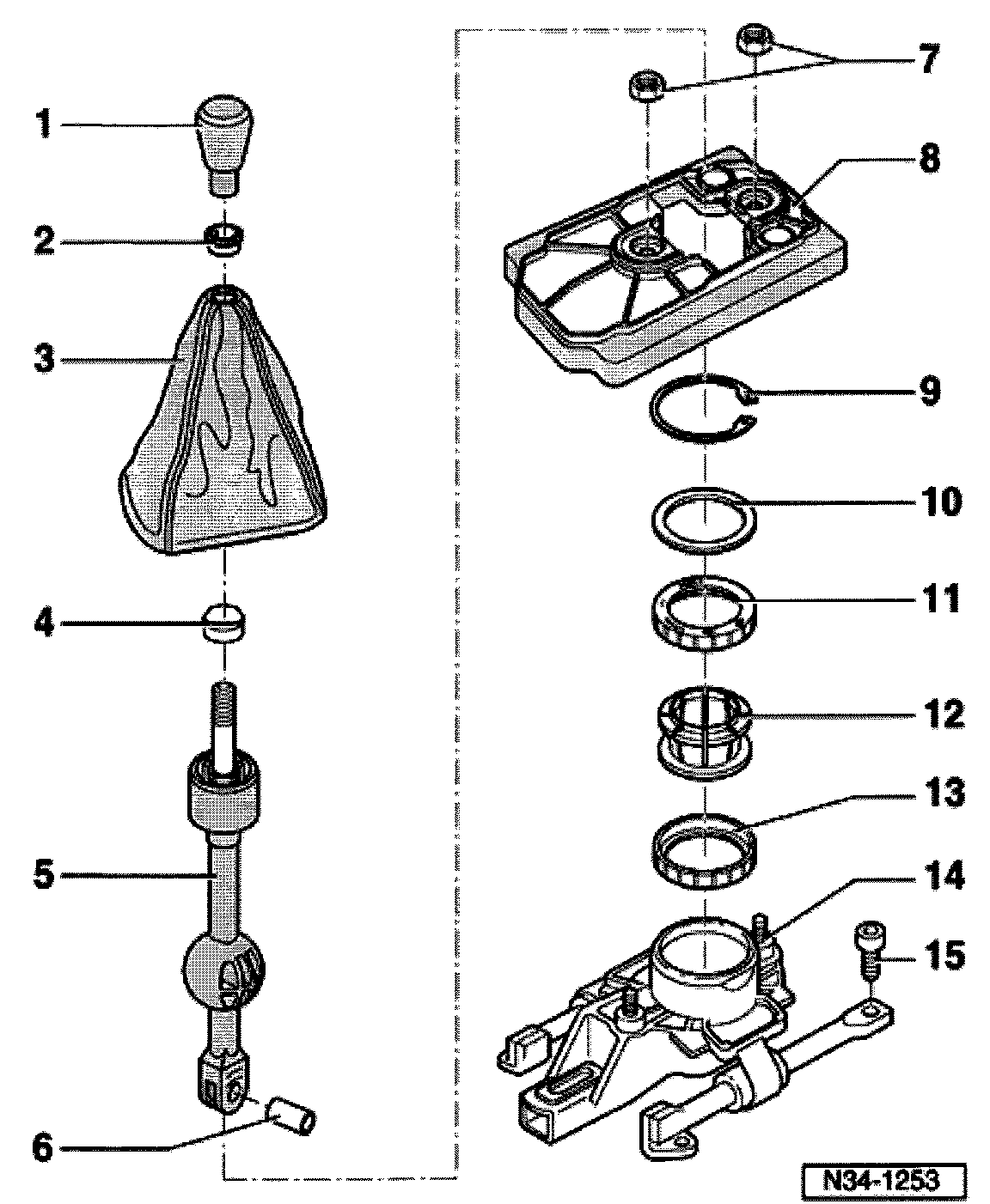 - The rubber cover for the shift lever housing must be removed (arrows).