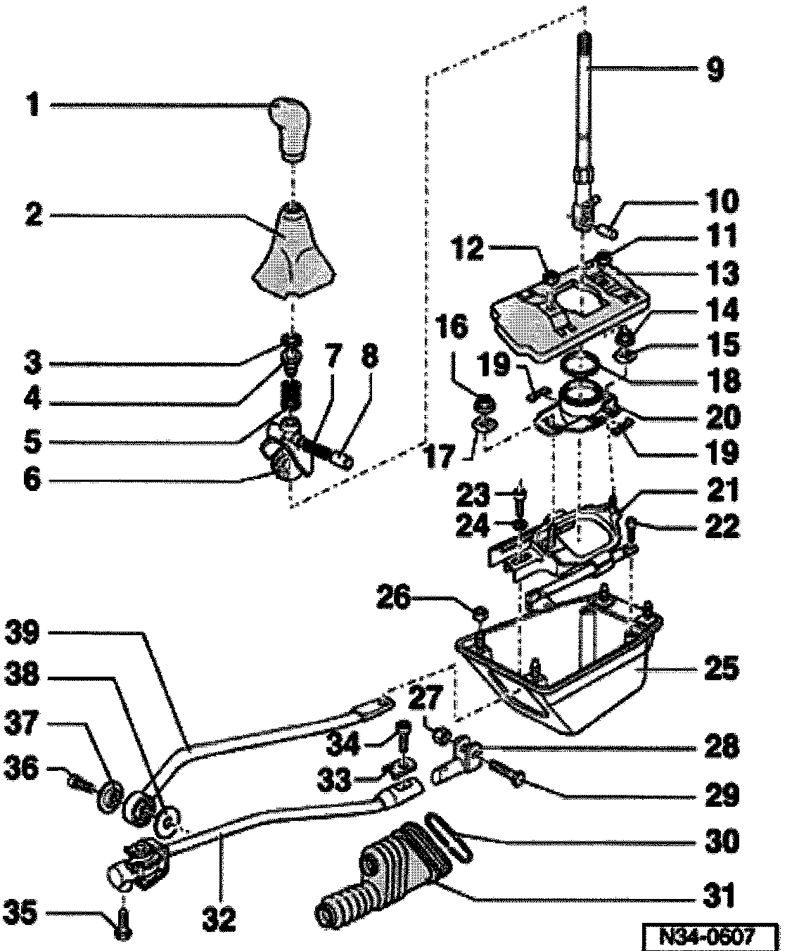 - The rubber cover for the shift lever housing must be removed (arrows).