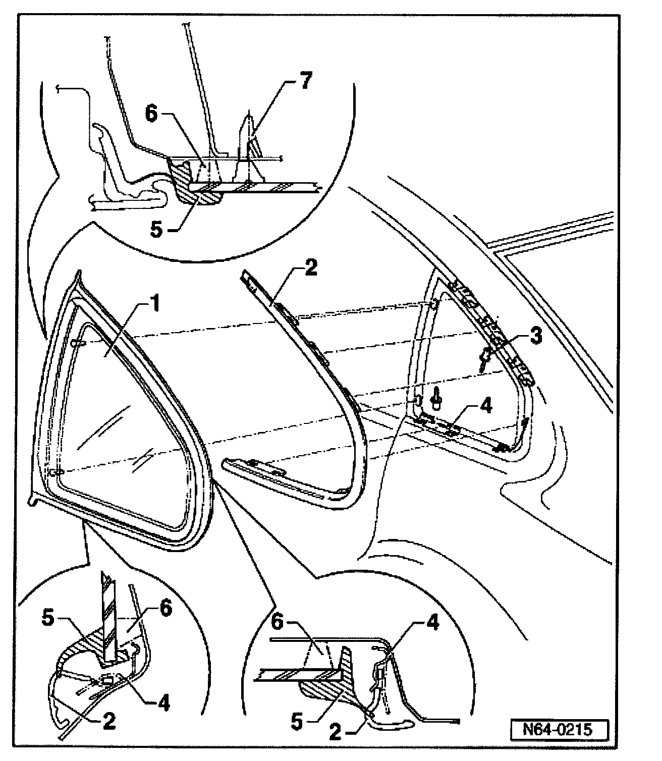Assembly sequence: First insert trim molding and then insert side window.