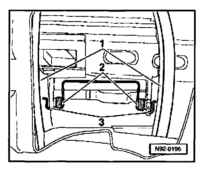 - Pull out cover -1- from bolts -2- and remove from bumper.