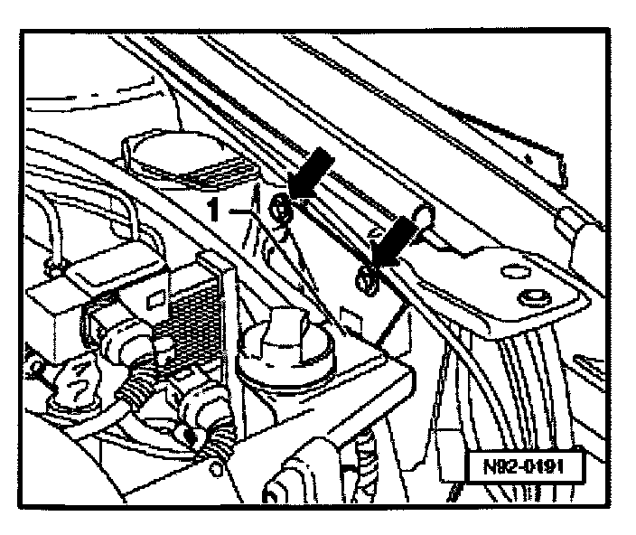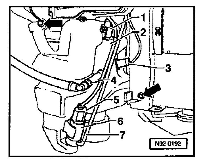 - Separate hose -7- from windshield washer pump -6-.