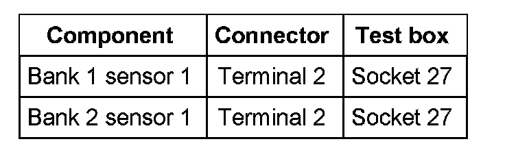 - Measure resistance for sensor heater at connector to oxygen sensor terminal 1 + 2.