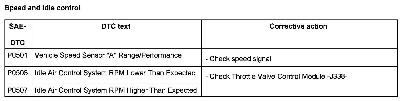 DTC P0501 - P0507: