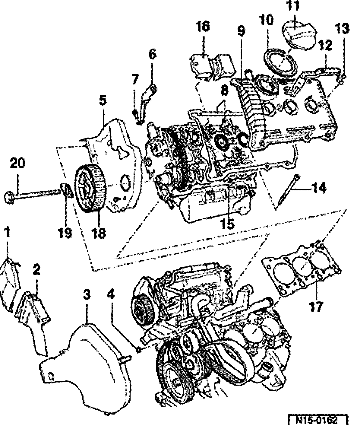 - Fit new cylinder head gasket. Lettering (Part No.) must be readable.