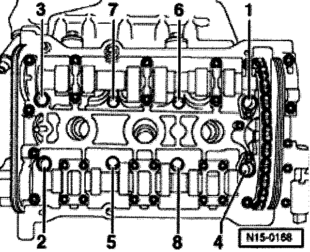 - When installing an exchange cylinder head with fitted camshaft, the contact surfaces between valve lifter and cam must be oiled after installation.