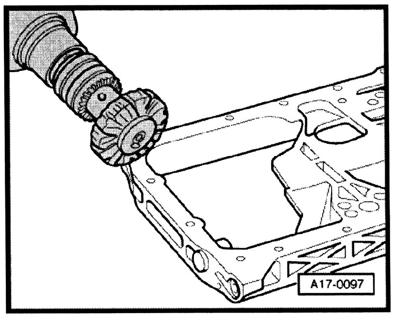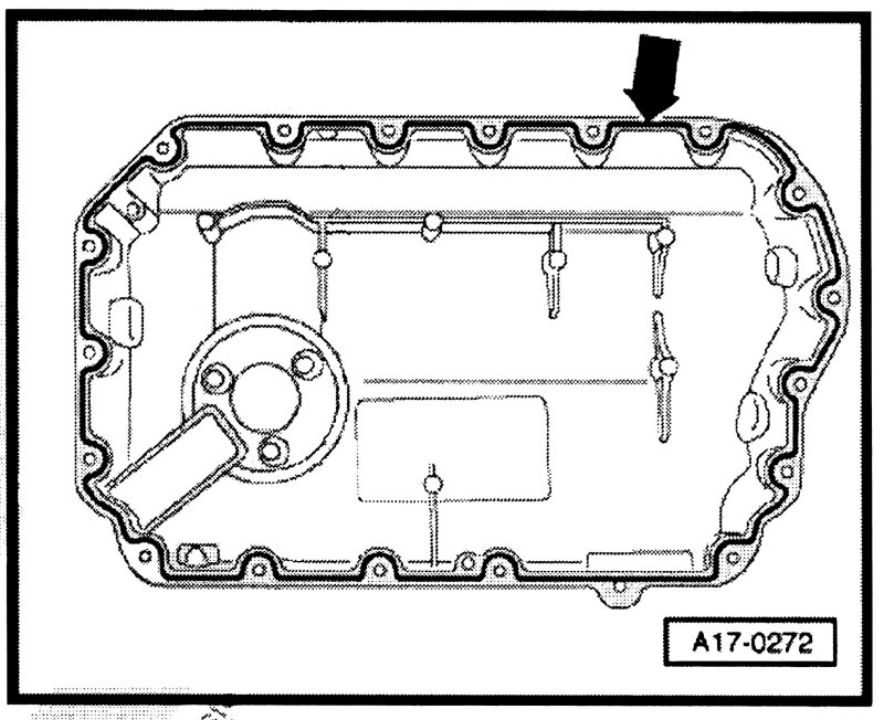 - Apply sealant bead -arrow- on clean sealing surface of lower part of oil pan as shown in illustration.
